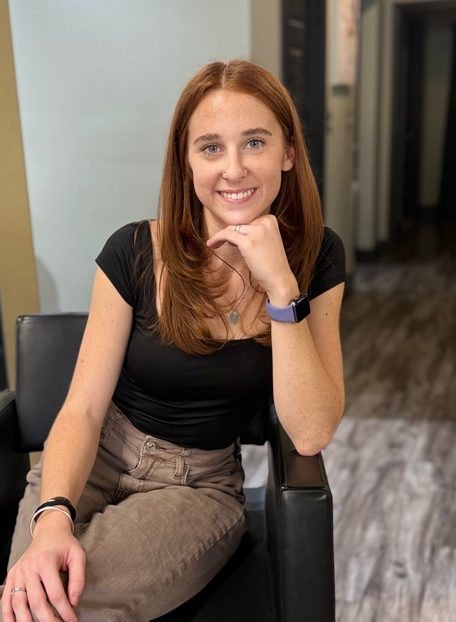 Started as a receptionist, and now learning all things hair. Kat has a passion for extensions and color, focusing on creating personalized looks that leave every client feeling confident, and beautiful.